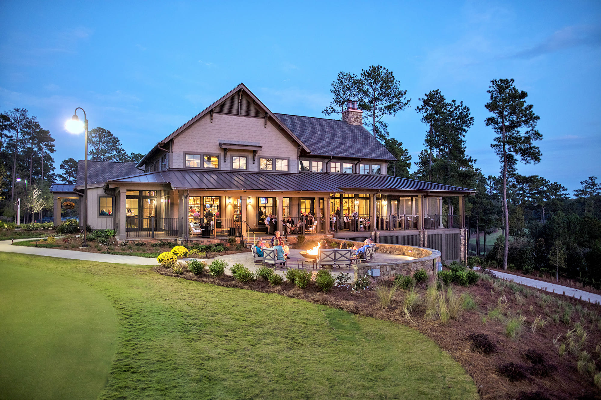 The National Village at Reynolds Lake Oconee offers a diverse experience amongst the other prestigious clubhouses within this development. Our design separates the three major components, being social, golf shop, & golf carts, into an assemblage of individual buildings to create a charming village. The layout resembles a vestige of southern agrarian buildings to create a memorable golf experience.
