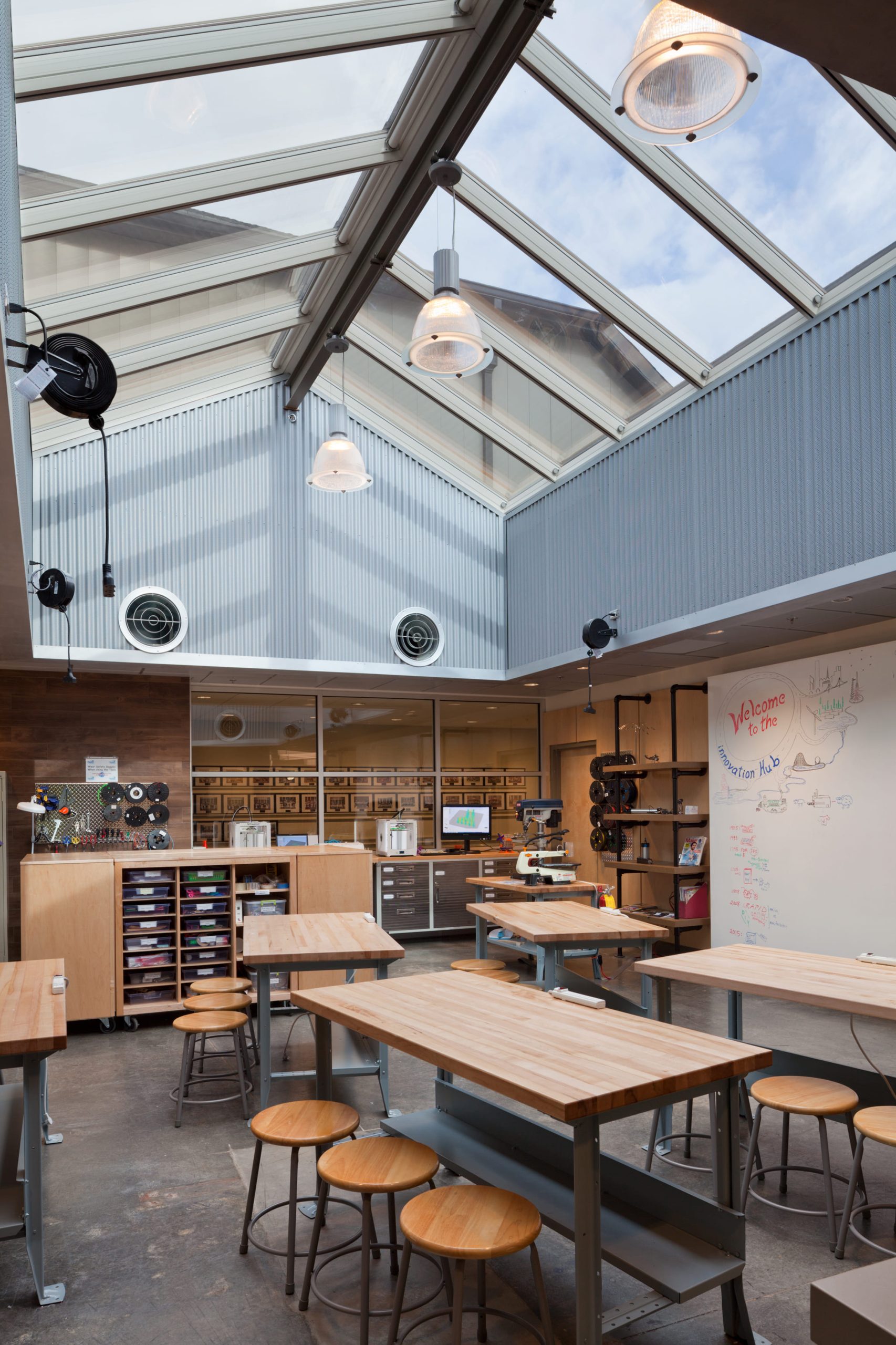 "Trinity School's new Collaborative Learning Center provides a flexible and interactive learning space allowing students to create their own environments."