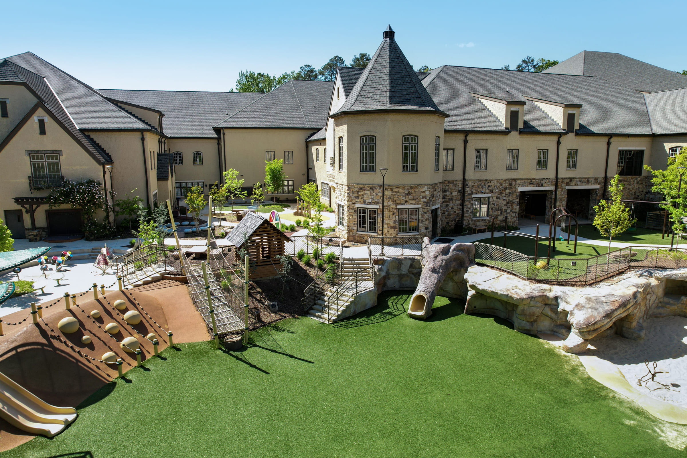 Providing Trinity School architectural services for over 20 years, the Pre-Kindergarten through sixth grade program provides students a world class curriculum within the 130,000 square foot facility. Students experience a “sense of home” with the French chateauesque scale and architectural detailing of the building, while the interior provides a cutting edge learning environment reflecting the mission and philosophy of the school.